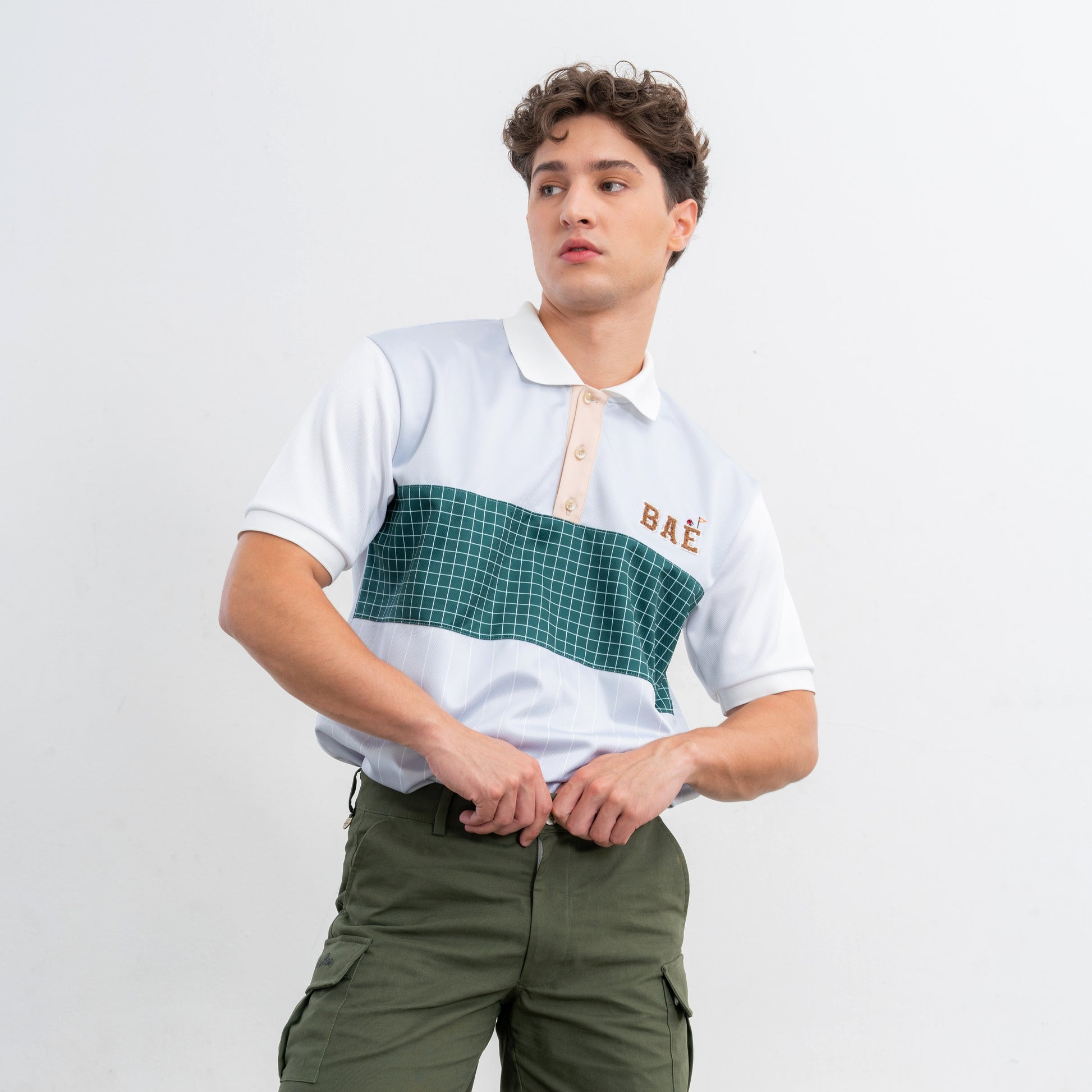 The COURT Men’s Polo is a regular-fit, short-sleeved shirt featuring sophisticated Grid and Stripe details. Crafted from Quick Dry fabric, it ensures comfort and moisture-wicking performance for long days on the golf course.
